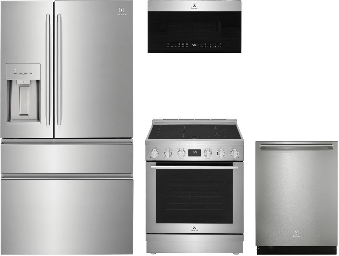 The Electrolux 4 Piece Stainless Steel Kitchen Appliance Package with a French door refrigerator, induction range, built in dishwasher, and over the range convection microwave. Read More