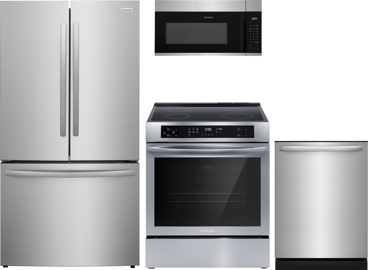 Frigidaire® 4 Piece Stainless Steel Kitchen Package with French door refrigerator, freestanding induction range, built in dishwasher and over the range microwave. Read More