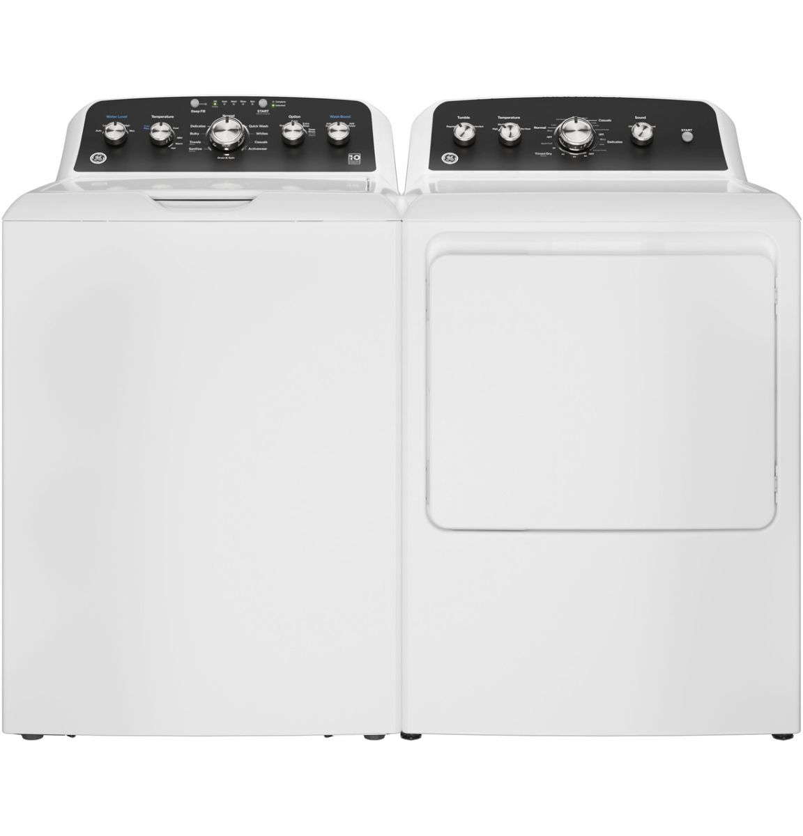 GE® White Laundry Pair with a 4.5 cu. ft. capacity top load washer and a 7.2 cu. ft. capacity front load electric dryer. Read More