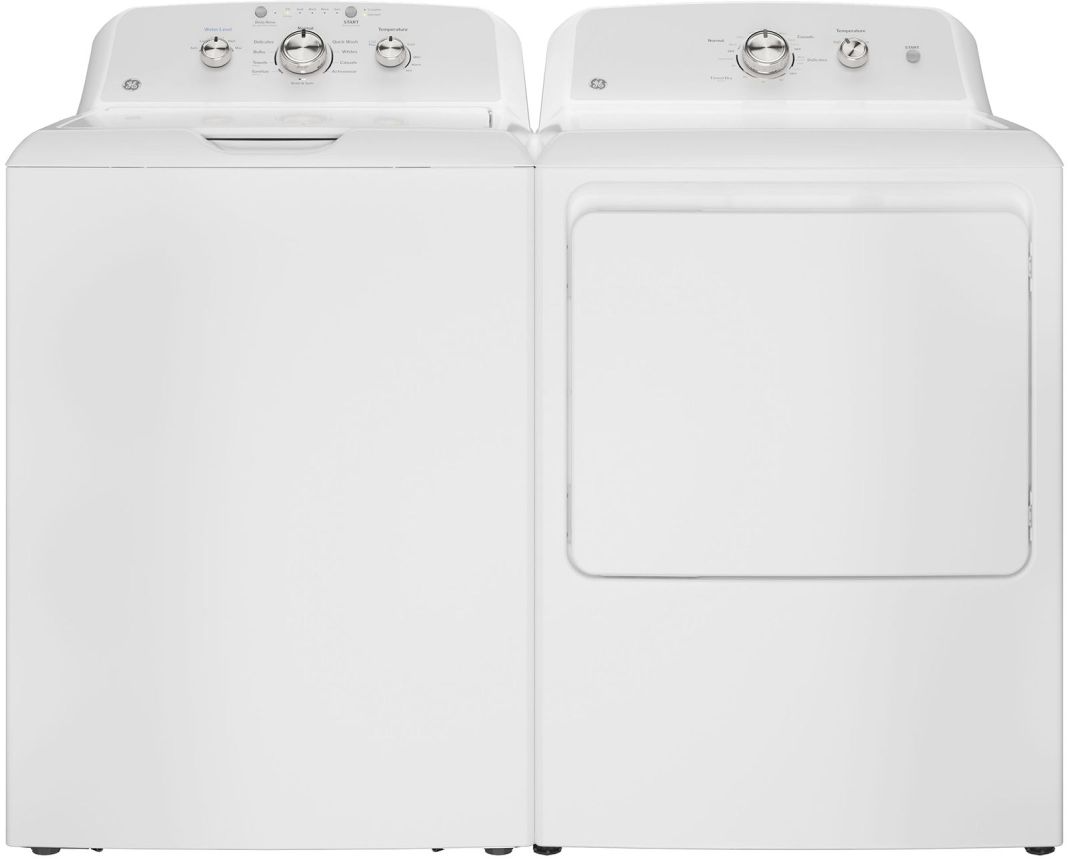 GE® White Laundry Pair with 4.3 cu. ft. capacity top load washer and 7.2 cu. ft. front load gas dryer. Read More
