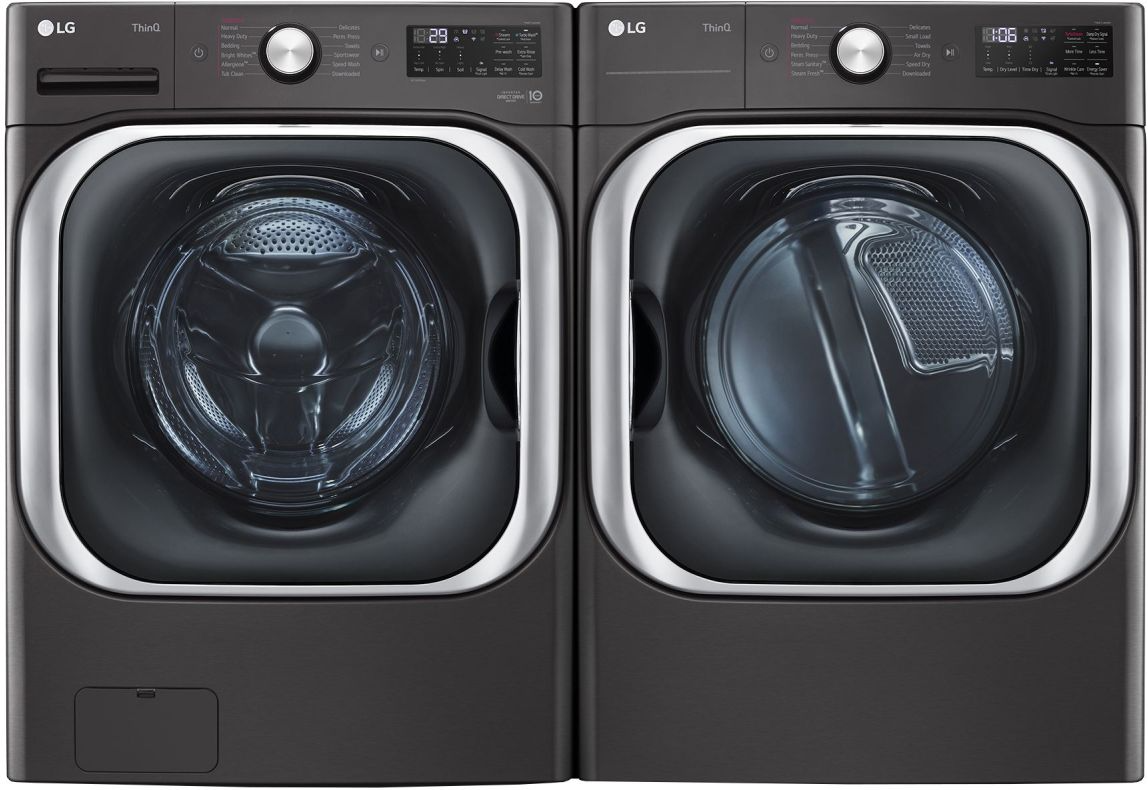 LG Black Steel Front Load Laundry Pair with a 5.2 cu. ft. capacity front load washer and a 9.0 cu. ft. capacity front load gas dryer. Read More