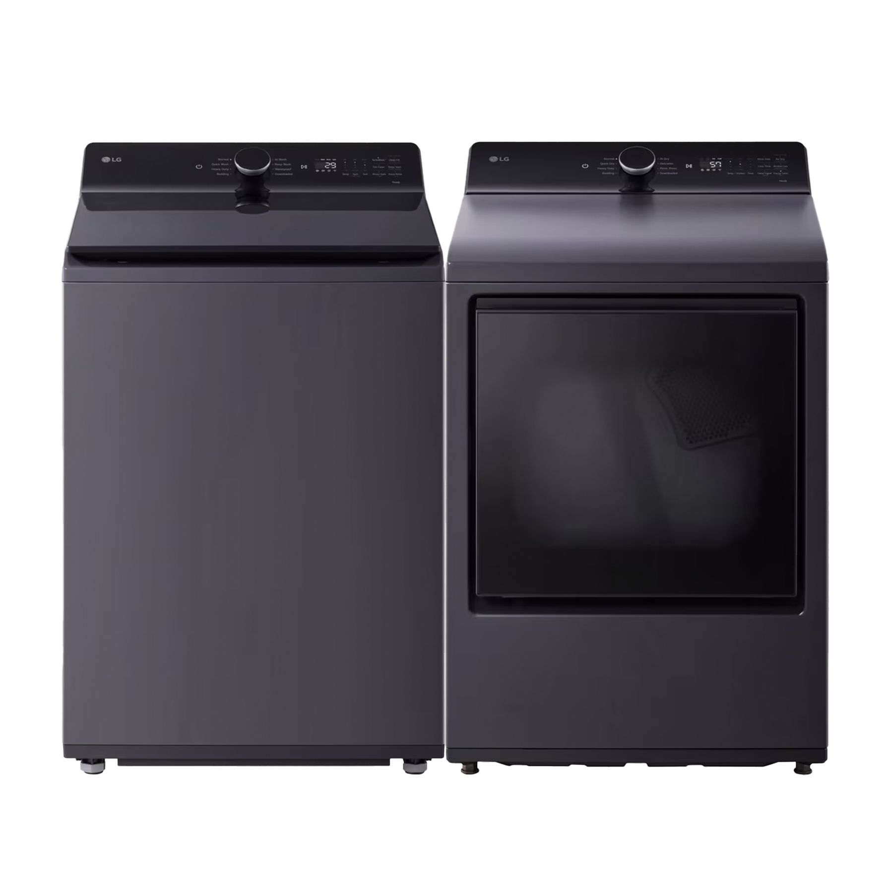 LG Matte Black Laundry Pair with 5.3 cu. ft. capacity top load washer and 7.3 cu. ft. front load electric dryer. Read More