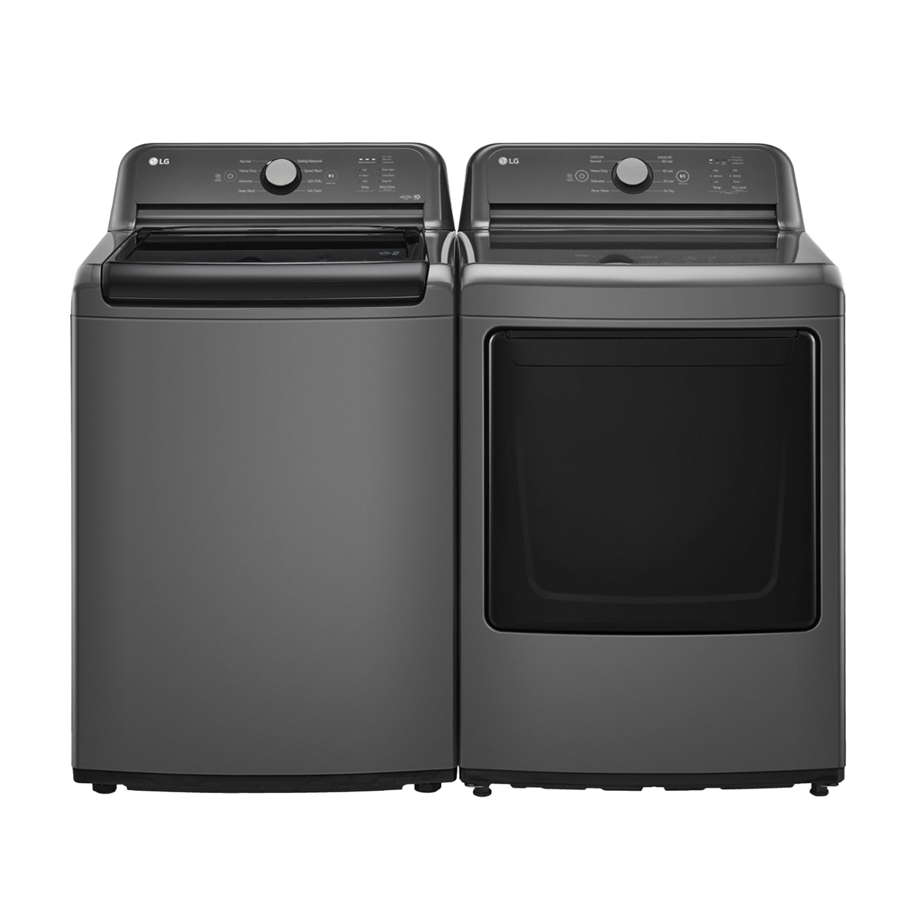LG Monochrome Gray Laundry Pair with 4.1 cu. ft. capacity top load washer and 7.3 cu. ft. front load electric dryer. Read More