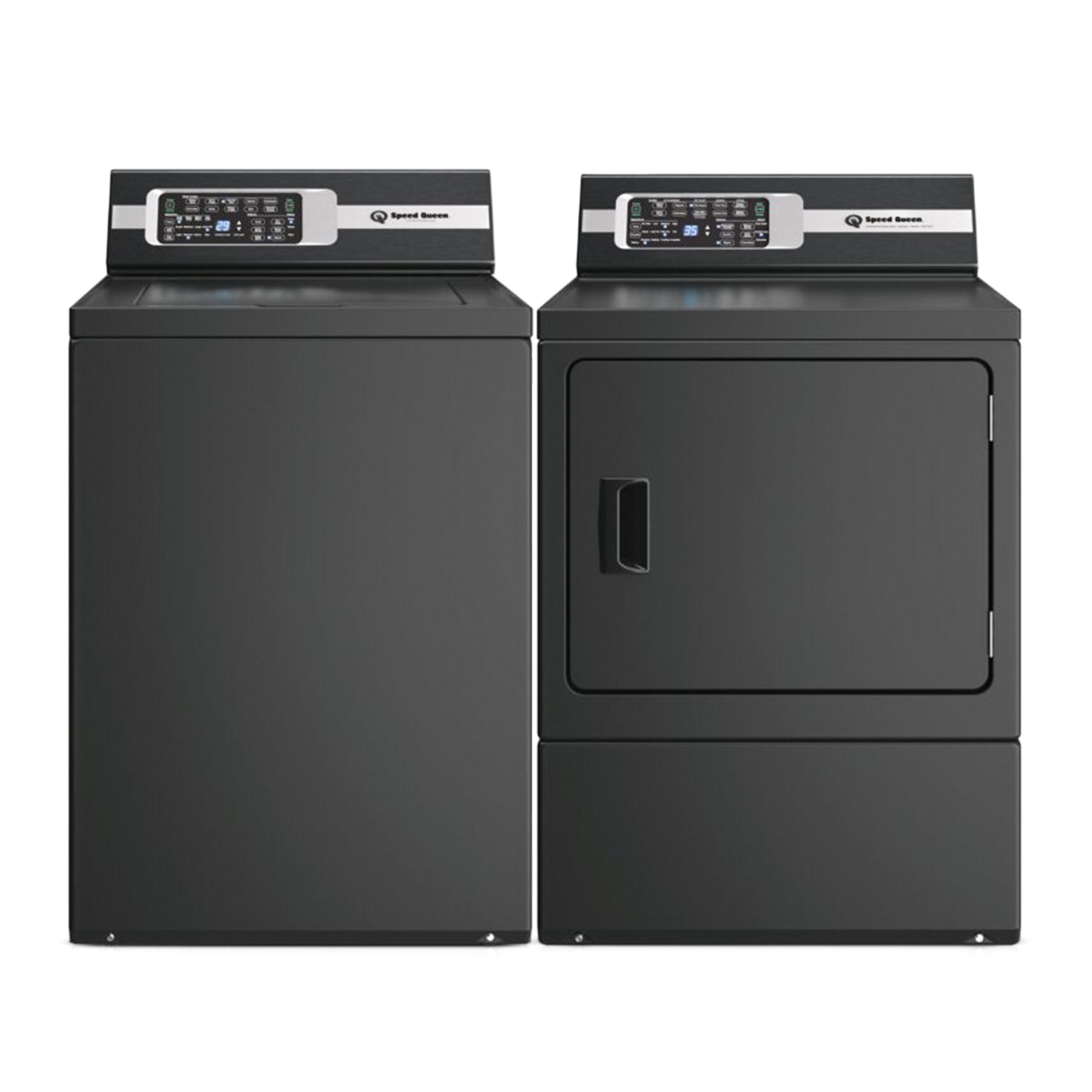 Speed Queen® Matte Black Laundry Pair with a 3.2 Cu. Ft. Top Load Washer and a 7.0 Cu. Ft. capacity front load gas dryer. Read More