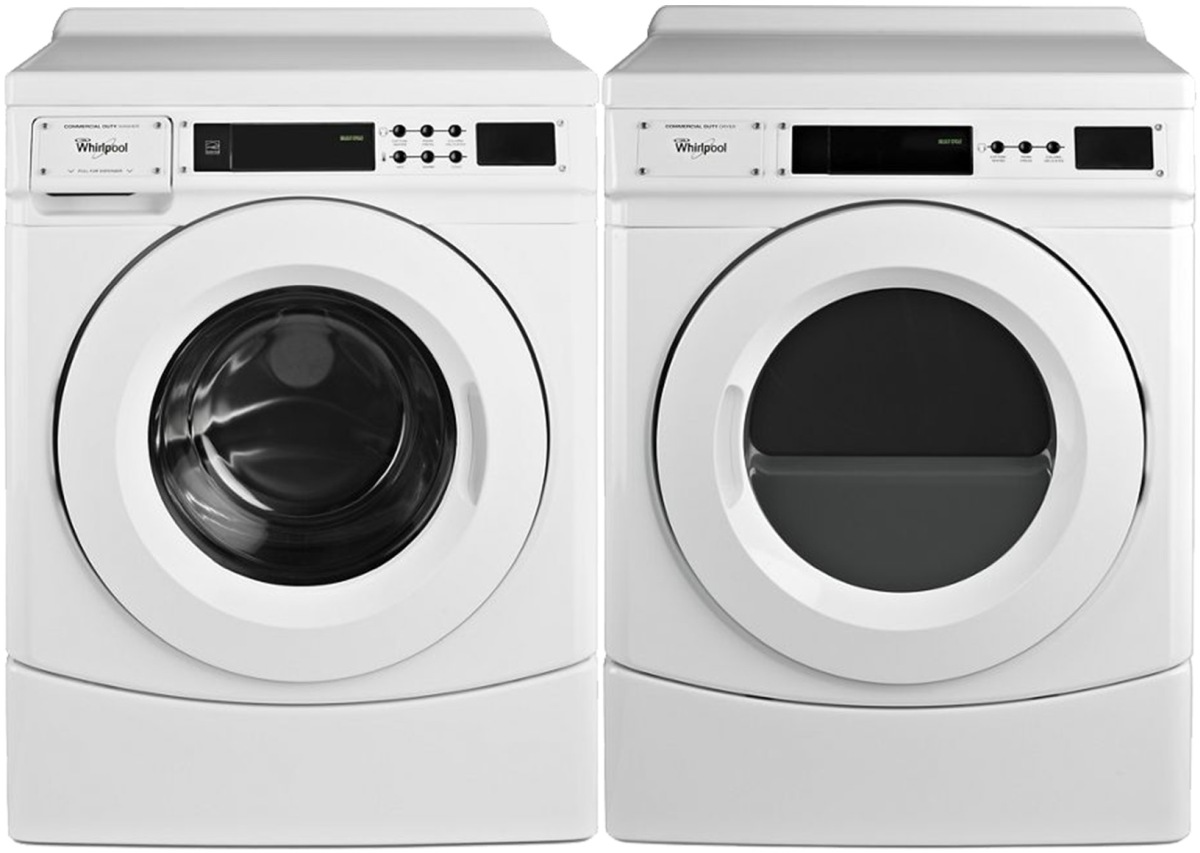 Whirlpool Commercial White Front Load Laundry Pair with a 3.1 cu. ft. capacity front load washer and a 6.7 cu. ft. front load electric dryer. Read More
