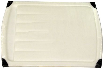 <p> Use this polypropylene reversible cutting board as a convenient cutting surface. The cutting board is dishwasher safe and will not dull knives. Cutting board has a groove around the rim to contain juices and has heavy duty rubber corners. Available only while supplies last.</p> <ul> <li> Treated with the anti-bacterial agent Bactonix to inhibit the growth of bacteria</li> <li> Cutting board side reverses to carving side with ridges and a trough for meat juices</li> <li> Solid polypropylene board has non-skid, non-scratch corner pads to protect your counters</li> <li> Life-time warranty</li> </ul>